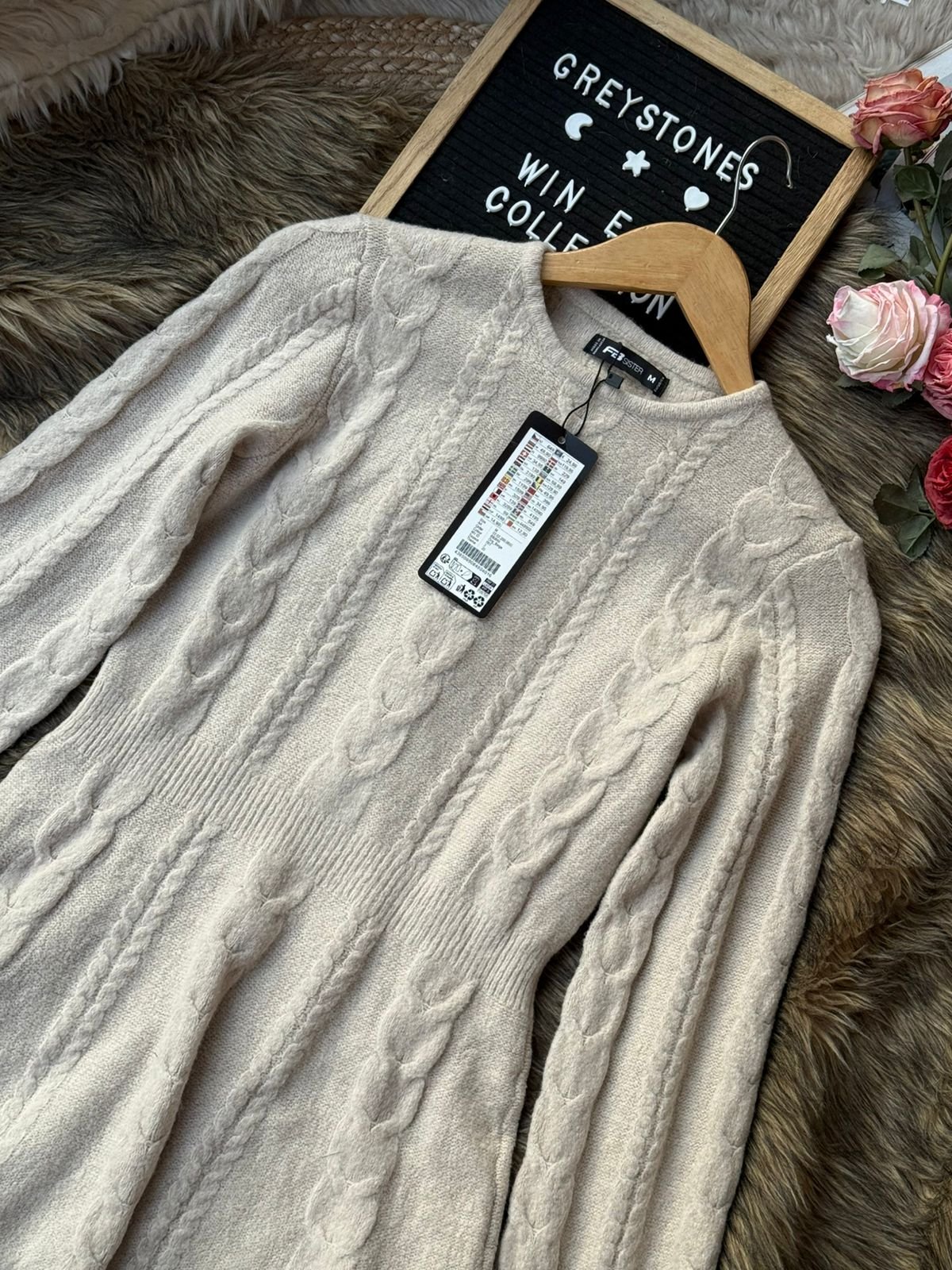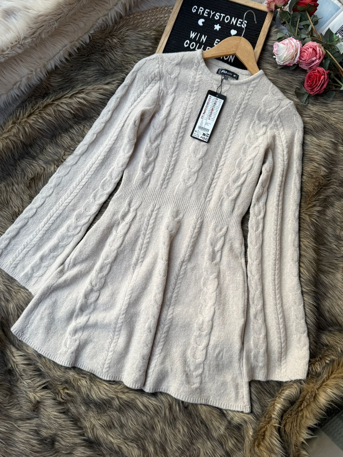 Stay cozy and stylish this winter with our Women’s Beige Cable Knit Sweater Dress. Designed with a soft, warm knit fabric, this dress features a classic cable knit pattern, long sleeves, and a gently flared hem for a flattering fit. The high-quality material ensures comfort and warmth, making it perfect for winter outings, casual wear, or cozy indoor days. Its neutral beige color makes it easy to pair with boots, coats, and winter accessories.