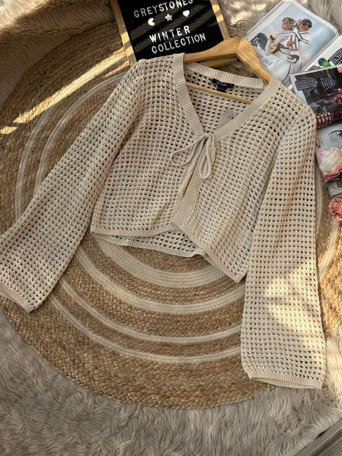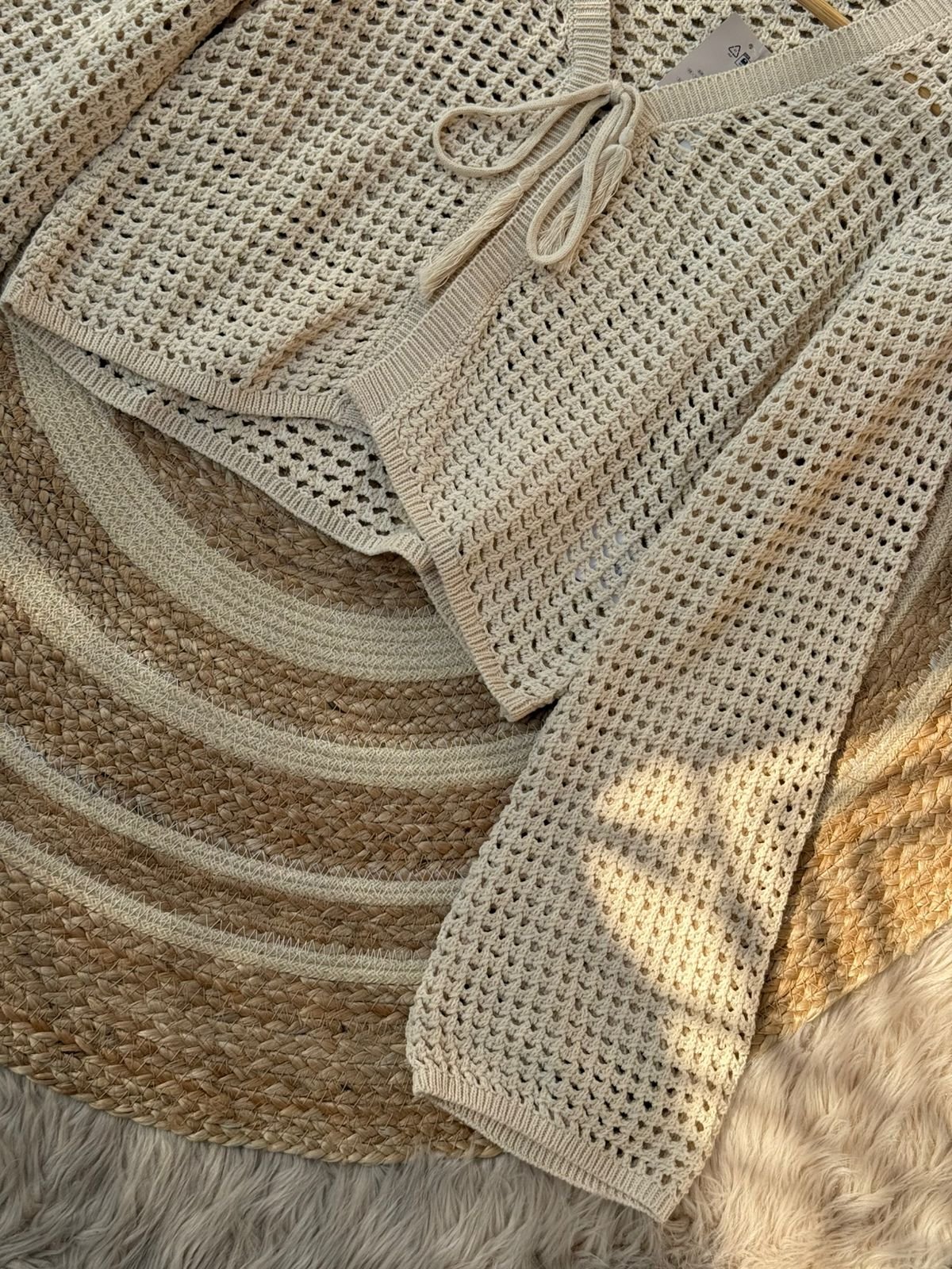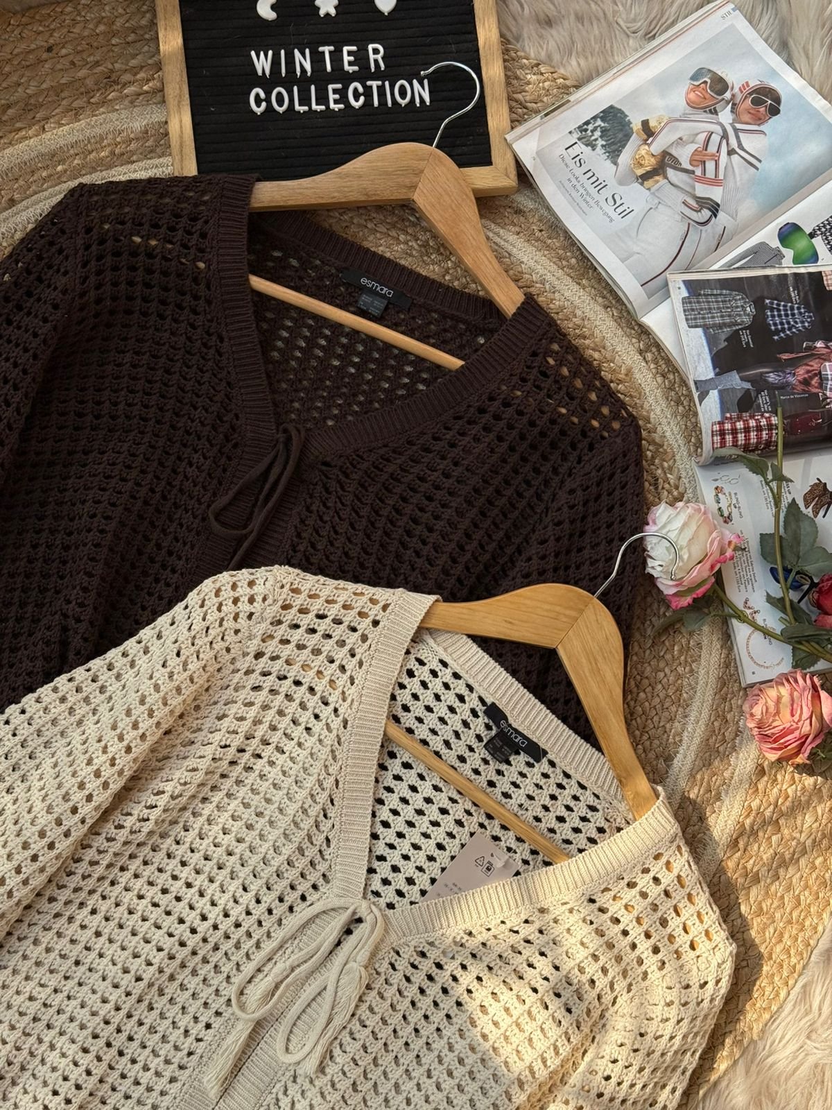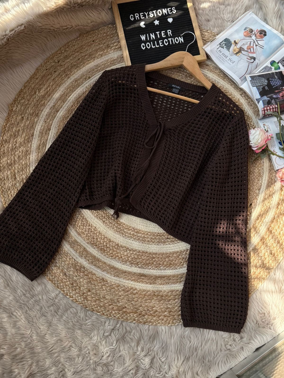Stay cozy and stylish with our Women’s Knit Crochet Cardigan, available in elegant cream and rich chocolate brown. This lightweight, breathable open-knit sweater features a trendy tie-front design and slightly flared long sleeves, making it perfect for layering during fall and winter. Its soft texture and airy crochet pattern offer both comfort and effortless style. Pair it with jeans, dresses, or camis for a chic everyday look. Ideal for winter collections, casual outings, and cozy indoor wear.